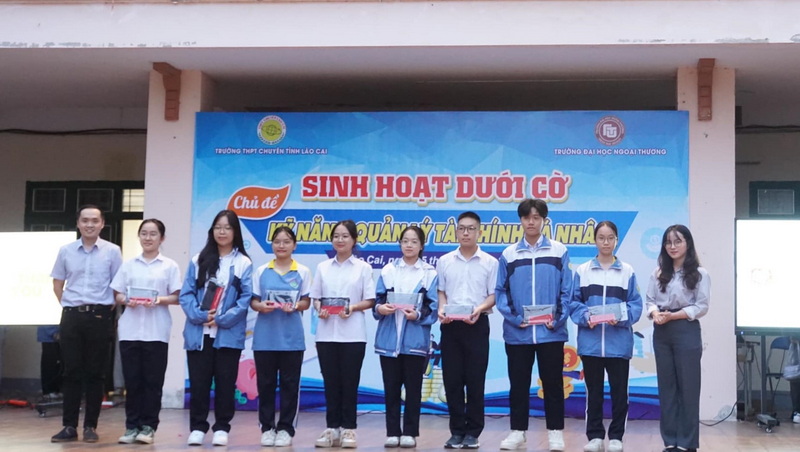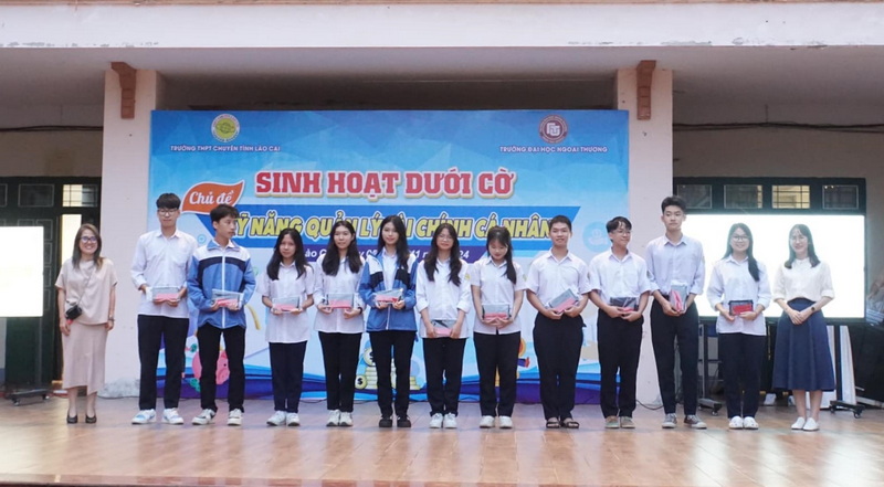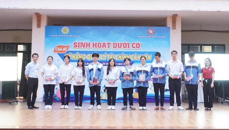 Ngày 05/11/2024, tiếp nối thành công của hoạt động Giảng dạy Tài chính căn bản tại các trường THPT vừa qua, trường ĐH Ngoại thương đã triển khai buổi sinh hoạt dưới cờ dành cho 1.130 học sinh trường THPT Chuyên Lào Cai với chủ đề "Kỹ năng quản lý Tài chính cá nhân".