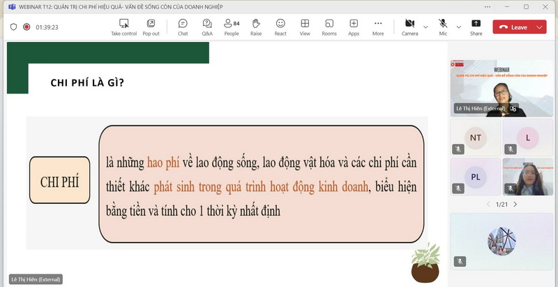 Ngày 12/12/2024, Cổng thông tin hỗ trợ doanh nghiệp Trường Đại học Ngoại thương (FBSP) đã tổ chức thành công Hội thảo Webinar #6 với chủ đề: “Quản trị chi phí hiệu quả- Vấn đề sống còn của doanh nghiệp” theo hình thức trực tuyến.