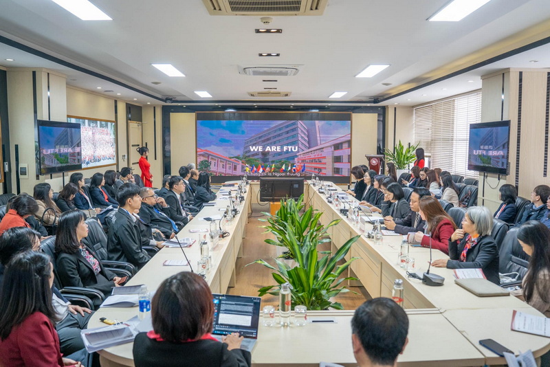 Về phía trường ĐH Ngoại thương có PGS, TS Lê Thị Thu Thủy - Phó Bí thư Đảng ủy, Chủ tịch Hội đồng trường; PGS, TS Phạm Thu Hương - Phó Hiệu trưởng; PGS, TS Vũ Thị Hiền - Phó Hiệu trưởng; PGS, TS Nguyễn Phúc Hiền - Giám đốc Trung tâm Khảo thí và Đảm bảo chất lượng, Trưởng các đơn vị phụ trách 4 chương trình đào tạo cùng lãnh đạo các đơn vị khác trong trường, đại diện cán bộ, giảng viên và người học.