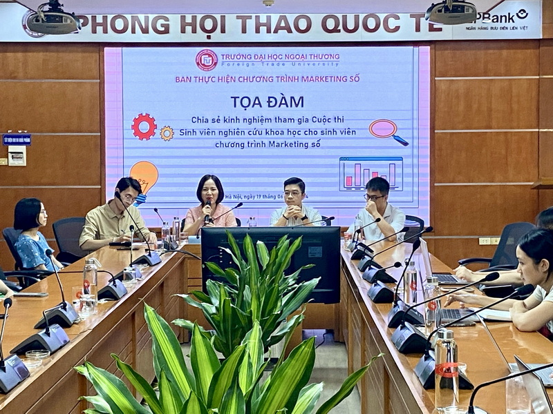 Ngày 19/06/2024, Ban thực hiện chương trình Marketing số đã phối hợp với Bộ môn Marketing và Truyền thông, Viện Kinh tế và Kinh doanh Quốc tế (KT&KDQT) tổ chức Tọa đàm “Chia sẻ kinh nghiệm tham gia Cuộc thi Nghiên cứu khoa học cho sinh viên chương trình Marketing số”.