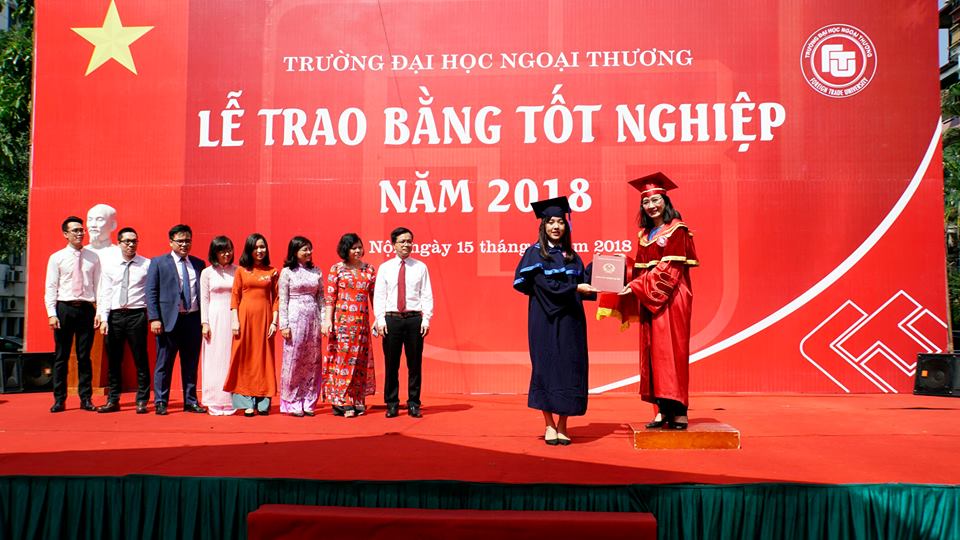 Thay mặt cho BGH và các Thầy Cô giáo Nhà trường, PGS. TS. Bùi Anh Tuấn đã tặng hoa, giấy khen và học bổng cho các tân thủ khoa tốt nghiệp xuất sắc của tất cả các chuyên ngành đào tạo, các chương trình đào tạo cử nhân hệ chính quy. Đại diện cho các tân cử nhân, sinh viên Đặng Thị Thảo Trang - Thủ khoa tốt nghiệp chuyên ngành Kinh tế đối ngoại, đồng thời cũng là thủ khoa đầu vào khối D1 đã phát biểu bày tỏ cảm ơn và tri ân tới các Thầy Cô giáo, cán bộ, công nhân viên chức Nhà trường trong suốt 4 năm qua đã tận tình giảng dạy, rèn luyện, hướng dẫn cho các em sinh viên để các em đạt được những thành tựu bước đầu ngày hôm nay, cảm ơn các bậc phụ huynh và gia đình đã luôn theo sát, ủng hộ, là chỗ dựa tinh thần vững chắc cho các bạn sinh viên. Tân thủ khoa xin hứa sẽ nỗ lực phấn đấu nhiều hơn nữa trên con đường phía trước để không phụ sự kỳ vọng và niềm tin yêu mà cha mẹ, thầy cô và bạn bè luôn dành cho.