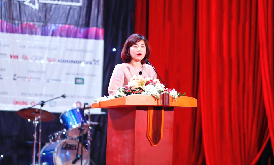 PGS, TS Đào Thị Thu Giang - Phó Hiệu trưởng nhà trường phát biểu tại đêm chung kết cuộc thi