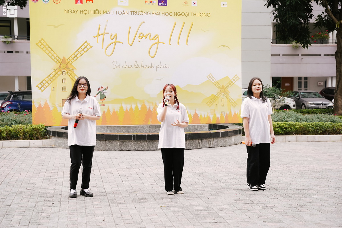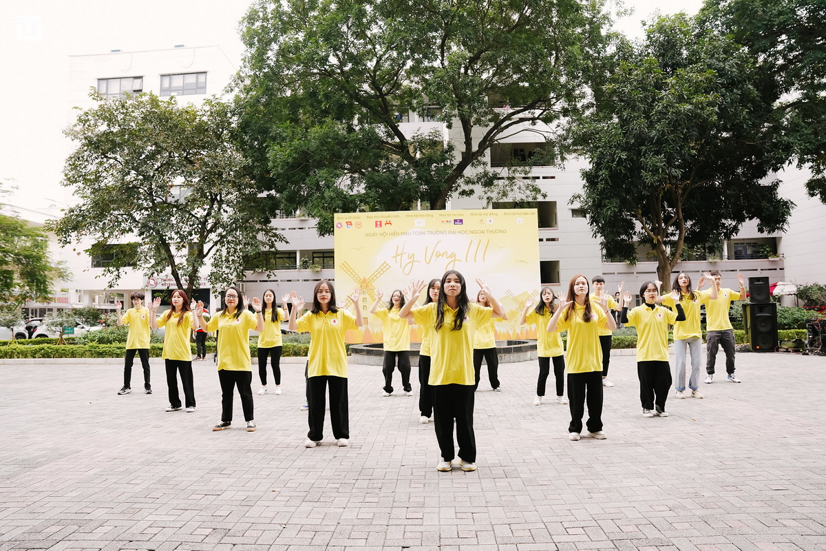 Buổi lễ phát động kết thúc bằng màn đồng diễn flashmob của hàng trăm tình nguyện viên Nhà trường nhằm truyền lửa nhiệt huyết tới hàng chục nghìn cán bộ, giảng viên và sinh viên Ngoại thương cùng nhau chung sức vì một Ngày Hội hiến máu Hy vọng III thành công rực rỡ.
