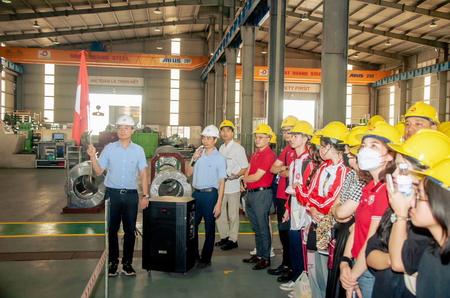 Thông qua chương trình trải nghiệm thực tế, sinh viên có cơ hội được tham quan doanh nghiệp, tìm hiểu sản phẩm, qui trình sản xuất. Công ty thép Nhật Quang lựa chọn công nghệ và thiết bị sản xuất tiên tiến, thân thiện với môi trường để cung cấp sản phẩm chất lượng cao, đáp ứng tiêu chí “zero defect” và được ứng dụng trong các lĩnh vực như cơ khí chế tạo, giao thông vận tải và kết cấu xây dựng. Ngoài việc bán sản phẩm ở thị trường nội địa, đến nay, thép Nhật Quang đã xuất khẩu đến nhiều nước như Mỹ, Nhật Bản, Úc, Canada, Hồng Kông… và gia nhập chuỗi cung ứng của các tập đoàn như GE, Canon và Honda. Đặc biệt, sinh viên của Nhà trường được tham quan khu nội trú của nhà máy và trải nghiệm bữa ăn công nghiệp cùng với CBNV của Công ty. Điểm thú vị là trong 24 năm qua kể từ khi thành lập, thép Nhật Quang đã có một số cặp vợ chồng nên duyên tại đây và đều được Công ty bố trí nhà ở. Các em bé được sinh ra và lớn lên tại đây giờ tiếp tục làm việc cho Nhật Quang.