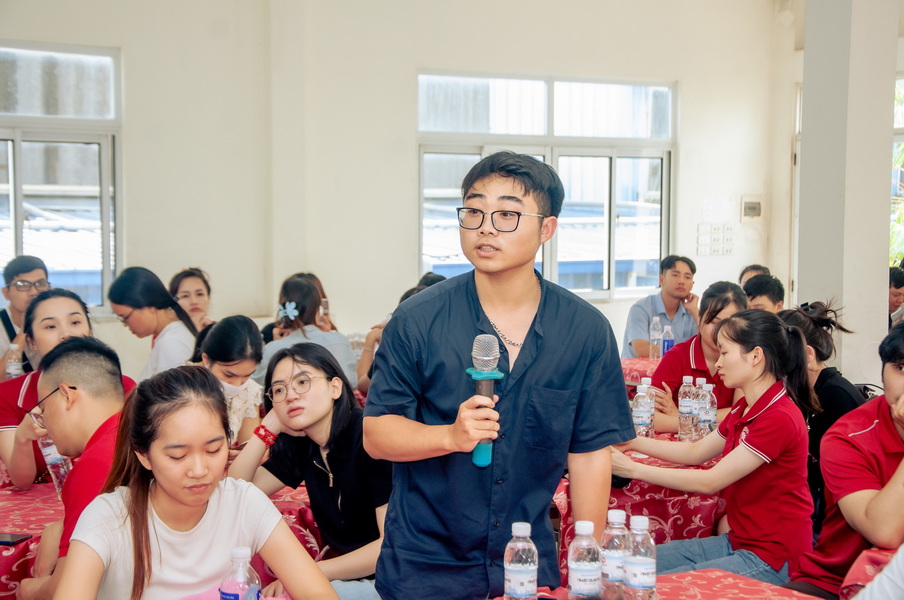 Sau hoạt động tham quan, khảo sát tại Nhà máy, sinh viên của Nhà trường được lắng nghe những chia sẻ của các anh/chị đại diện Ban lãnh đạo Công ty về sự ra đời và phát triển của Công ty, triết lý, tầm nhìn và chiến lược phát triển hoạt động kinh doanh đến năm 2030, Thép Nhật Quang trở thành tập đoàn kinh tế tư nhân đại chúng hàng đầu của Việt Nam trong lĩnh vực sản xuất và cung ứng sản phẩm thép công nghiệp chất lượng cao, thương hiệu quốc gia vươn tầm châu Á. Trong phần hỏi đáp, các bạn sinh viên đã nêu những câu hỏi cho BLĐ Công ty liên quan đến một số vấn đề: Vai trò của hoạt động Marketing đối với hiệu quả kinh doanh tại Công ty Thép Nhật Quang; Chiến lược Marketing mix của Nhật Quang trong thời kỳ VUCA (Biến động, Không chắc chắn, Phức tạp và Mơ hồ); Trong bối cảnh khó khăn chung của nền kinh tế thế giới, Thép Nhật Quang vẫn tăng trưởng và chuẩn bị cho xây dựng Nhà máy số 3 nhằm nâng tổng quy mô Nhà máy lên 22 ha; Quan điểm của Thép Nhật Quang đối với việc xử lý chất thải trong sản xuất và tuân thủ các yêu cầu của đối tác nhập khẩu từ Mỹ, Úc, Anh và Hồng Kông.