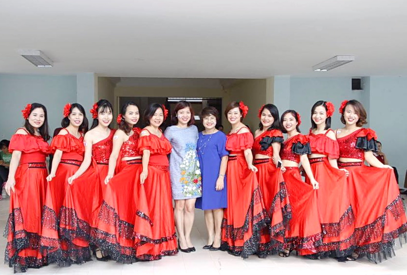 PGS, TS Đào Thị Thu Giang, PGS, TS Nguyễn Thu Thủy - Phó Hiệu trưởng nhà trường chụp ảnh lưu niệm cùng nhóm nhảy flamenco