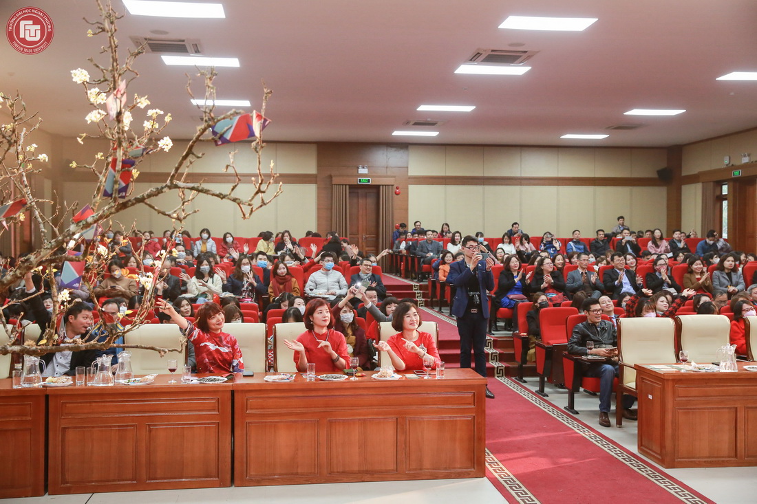 Trong không khí vui vẻ và ấm áp đầu năm mới, Đảng ủy, Ban giám hiệu và Ban chấp hành Công đoàn trường đã khui rượu và nâng ly chúc mừng năm mới. Công đoàn trường cũng đã tổ chức nhiều tiết mục văn nghệ, nhạc kịch và quay số may mắn trúng thưởng vô cùng hấp dẫn để chào xuân và chúc mừng năm mới Canh Tý.