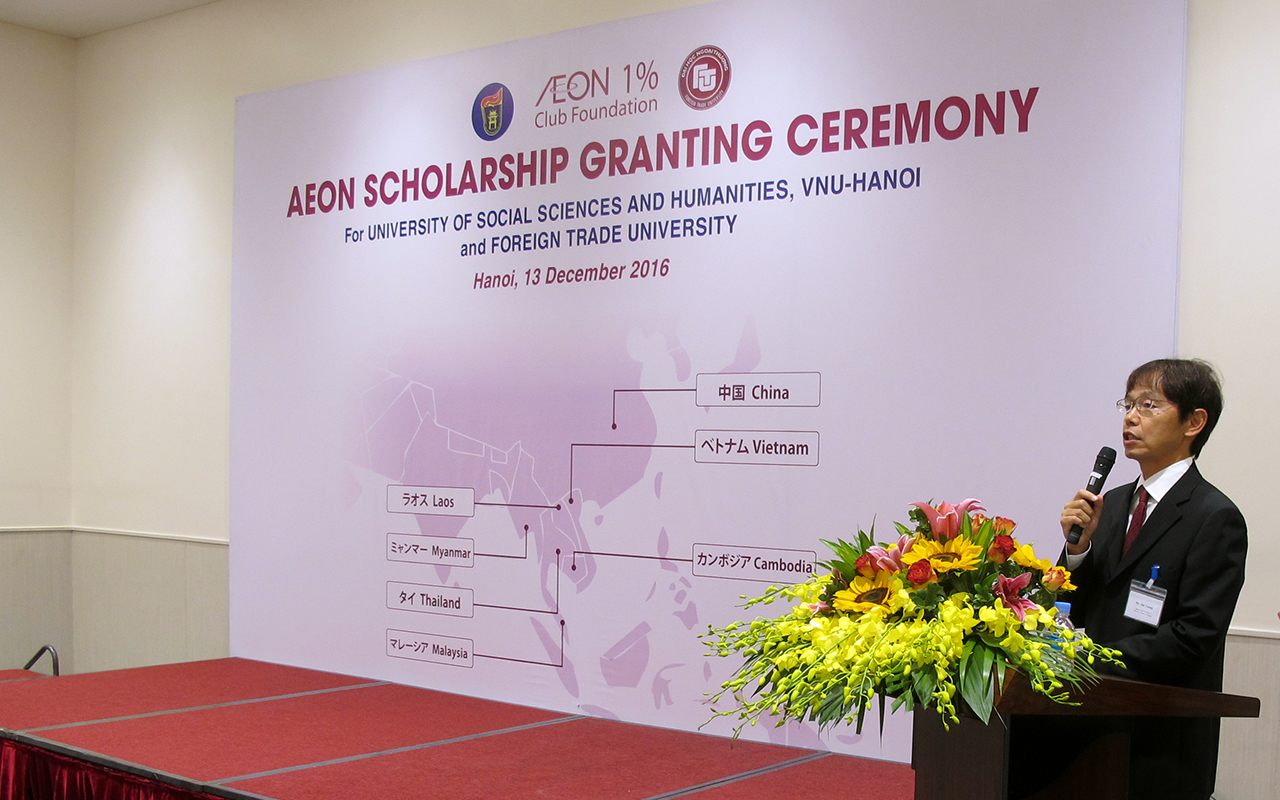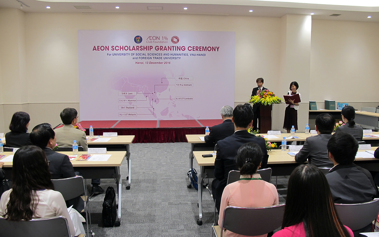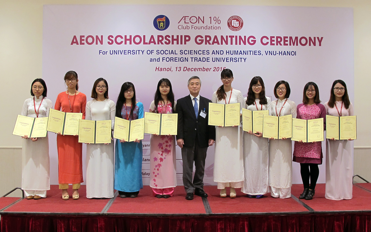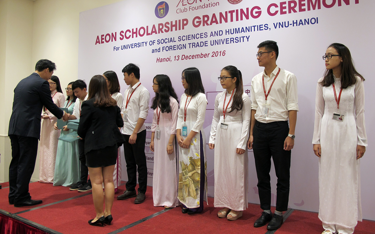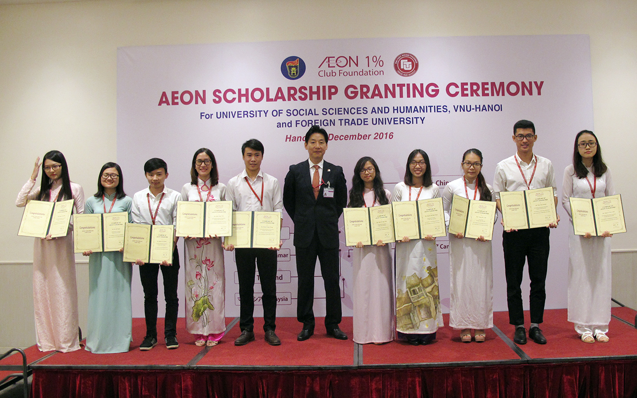 Ngày 13 tháng 12 năm 2016 Tập đoàn AEON đã tổ chức lễ trao học bổng dành cho các bạn sinh viên có thành tích học tập xuất sắc của trường Đại học Ngoại thương và trường Đại học Khoa học Xã hội & Nhân văn.