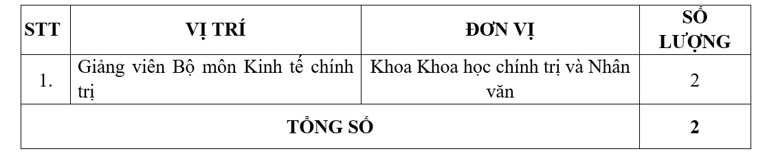II. Tuyển dụng giảng viên bộ môn Kinh tế chính trị