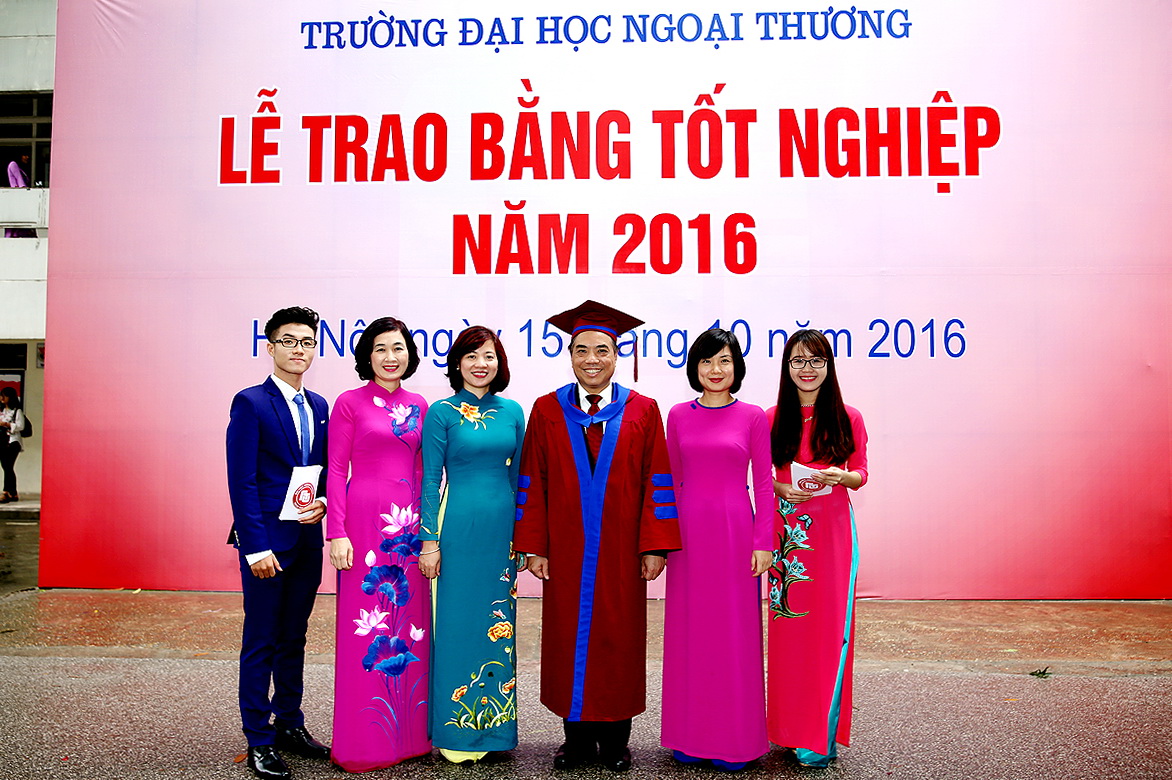 Tham dự buổi lễ Trao bằng Tốt nghiệp năm 2016 có sự hiện diện của PGS, TS Bùi Anh Tuấn - Bí thư Đảng ủy - Hiệu trưởng trường Đại học Ngoại thương; PGS, TS Đào Thị Thu Giang - Phó Bí thư Đảng ủy - Phó Hiệu trưởng trường Đại học Ngoại thương; PGS, TS Lê Thị Thu Thủy - Phó Hiệu trưởng trường Đại học Ngoại thương; PGS, TS Nguyễn Thu Thủy - Phó Hiệu trưởng trường Đại học Ngoại thương; PGS, TS Nguyễn Văn Hồng - Nguyên Phó Hiệu trưởng trường Đại học Ngoại thương; TS Phạm Thu Hương - Chủ tịch Công đoàn trường - Trưởng Phòng Quản lý Đào tạo cùng các thầy, cô Trưởng, Phó các Khoa, Phòng, Ban và các em sinh viên tốt nghiệp trong toàn trường.