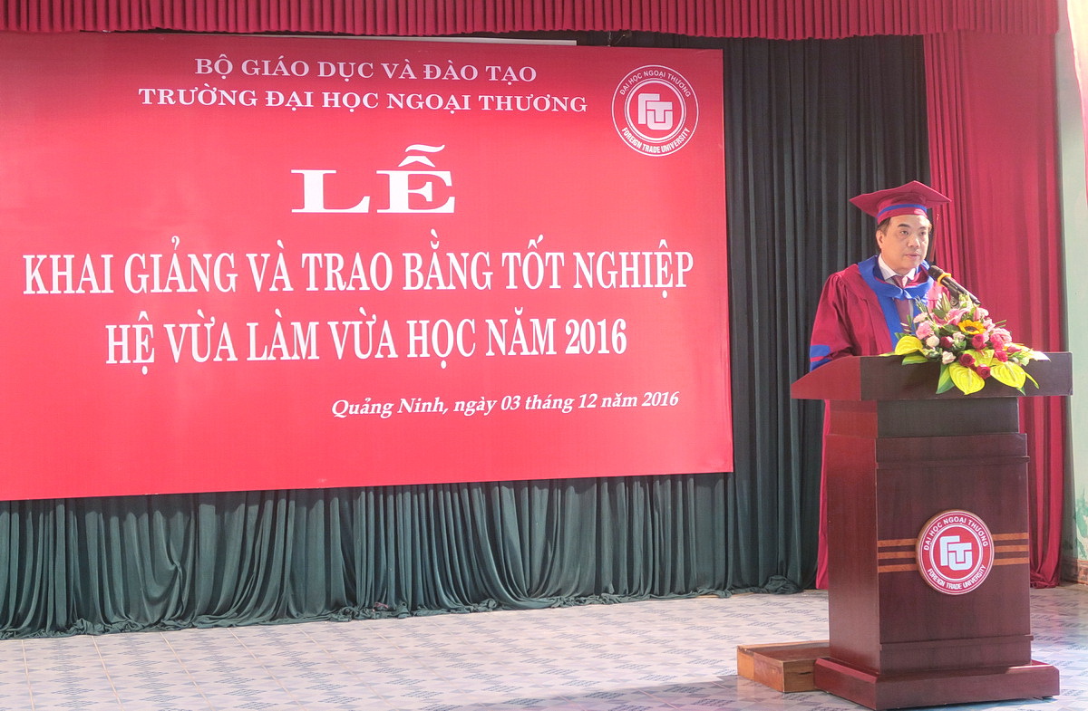 Ngày 03/12/2016, tại Cơ sở Quảng Ninh; Trường Đại học Ngoại thương đã long trọng tổ chức Lễ khai giảng lớp Đại học VLVH chuyên ngành QTKD khóa 10 và Trao bằng tốt nghiệp cho sinh viên các lớp Đại học VLVH: QTKD khóa 8, Kế toán khóa 5.