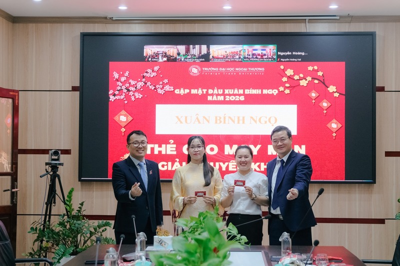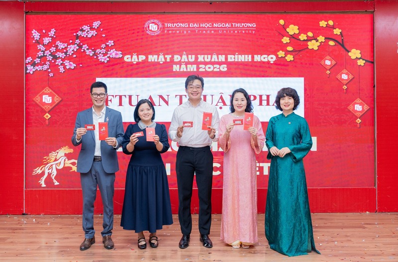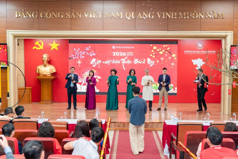 Ngày 24/02/2026 (tức mùng tám tháng Giêng Âm lịch), Trường Đại học Ngoại Thương đã tổ chức chương trình Gặp mặt đầu xuân Bính Ngọ 2026 theo hình thức trực tiếp kết hợp trực tuyến kết nối Trụ sở chính tại Hà Nội cùng các đầu cầu Cơ sở II tại TP. Hồ Chí Minh và Cơ sở Quảng Ninh.