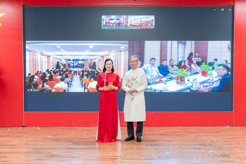 Trong không khí tươi vui chào đón Xuân mới, các thầy cô trong Tập thể lãnh đạo Nhà trường đã gửi những lời chúc đầy ý nghĩa tới các thầy cô cán bộ viên chức Nhà trường cũng như cùng cả Hội trường nâng ly tượng trưng chúc mừng năm mới, gửi gắm những tình cảm, chia sẻ niềm tự hào cũng như thể hiện sự đồng lòng, quyết tâm đạt được những mục tiêu trong chiến lược phát triển đã đề ra.