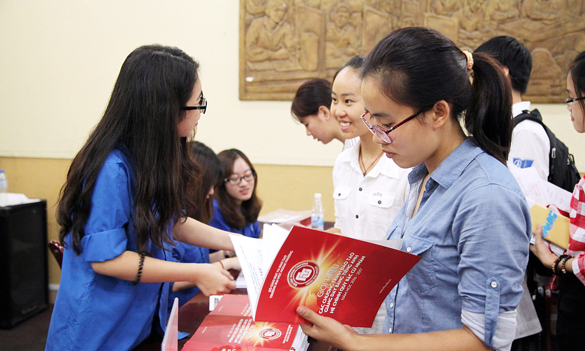 Hôm nay ngày 05/09/2016 - là ngày nhập học đầu tiên của các tân sinh viên K55. Mặc dù thời gian nhập học kéo dài trong 3 ngày từ 5/9/2016 đến 7/9/2016 nhưng ngay trong buổi sáng nay, Nhà trường đã chào đón gần 500 sinh viên đến làm thủ tục. Vui mừng, háo hức, phấn khởi là tâm trạng chung của các em sinh viên và phụ huynh đi cùng.