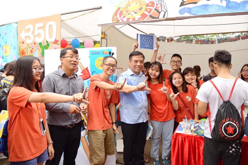 Ngay sau khi phát biểu khai mạc, Thầy Hiệu trưởng cùng các thầy cô giáo đã đi tham quan gian trại của Đoàn Thanh niên, Hội sinh viên cùng hơn 40 CLB trong trường. Đến từng gian trại, Thầy ân cần hỏi han các bạn sinh viên cũng như các em tân sinh viên K56, chúc các bạn có những kỷ niệm đáng nhớ trong FCD 2017.