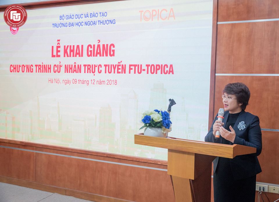 Phát biểu tại buổi lễ, PGS, TS Nguyễn Thu Thủy đã gửi lời chúc mừng tới các tân sinh viên đã trúng tuyển vào chương trình đào tạo từ xa bậc cử nhân theo mô hình tiên tiến. Cô khẳng định chương trình này là chương trình đào tạo chất lượng cao với đội ngũ giảng viên, hệ thống bài giảng, cơ sở vật chất đạt chuẩn, đảm bảo đầu ra cho sinh viên. Tuy nhiên PGS, TS Nguyễn Thu Thủy cũng cho rằng trước mắt các sinh viên sẽ gặp nhiều khó khăn, thử thách, đòi hỏi bản lĩnh và quyết tâm rất lớn để hoàn thành toàn bộ chương trình đào tạo. Để làm được như vậy, mỗi sinh viên phải xác định được cho mình một tâm thế vững vàng, xây dựng kế hoạch và phương pháp học tập hiệu quả. Nhà trường cam kết sẽ hỗ trợ các em hết mình. PGS, TS Nguyễn Thu Thủy cũng đã gửi lời cảm ơn chân thành nhất tới Tổ hợp công nghệ giáo dục TOPICA – đối tác phát triển của Nhà trường vì sự đồng hành với Nhà trường trong suốt 2 năm qua để xây dựng và đưa vào triển khai chương trình đào tạo mới này. Đây sẽ là nền tảng vững chắc đảm bảo cho sự thành công của chương trình trong nhiều khóa tiếp theo.
