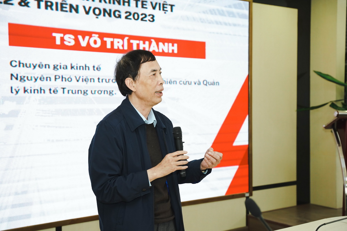 Tham dự tọa đàm, TS Võ Trí Thành - Chuyên gia kinh tế, Nguyên Phó Viện trưởng Viện Nghiên cứu và Quản lý Kinh tế Trung ương đã trình bày tham luận về “Bức tranh toàn cảnh kinh tế Việt Nam năm 2022, triển vọng 2023”. Với nhiều năm kinh nghiệm, chuyên gia kinh tế Võ Trí Thành đã đưa ra những cái nhìn tổng quan nhất về sự phục hội của kinh tế Việt Nam trong năm qua sau Đại dịch Covid-19, sự thay đổi mạnh mẽ của các doanh nghiệp trong quá trình chuyển đổi số. Đồng thời, ông cũng đưa ra những nhận định về tình hình chung cùng các diễn biến đáng chú ý của kinh tế Việt Nam trong năm 2023.
