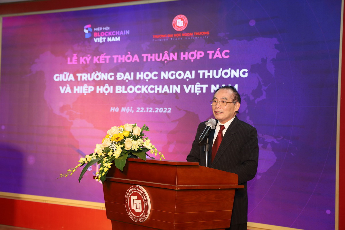 Đồng phát biểu tại buổi lễ, GS, TSKH Hoàng Văn Huây khẳng định, sự kiện ký kết thỏa thuận hợp tác giữa Hiệp hội Blockchain Việt Nam và Trường ĐH Ngoại thương nhằm giải quyết bài toán đào tạo đội ngũ nhân lực đủ khả năng xây dựng nền kinh tế số, nhất là trong thời kỳ bùng nổ của cuộc Cách mạng 4.0. Chủ tịch Hiệp hội Blockchain Việt Nam nêu bật ba mục tiêu của thỏa thuận hợp tác, gồm: Phối hợp đào tạo nguồn nhân lực liên quan đến công nghệ blockchain và kinh tế số, xây dựng chương trình giảng dạy, tham khảo các môn học chuyên ngành và các môn học có liên quan đến công nghệ blockchain; Chú trọng nguồn nhân lực có chuyên môn, trình độ cao, biết cách ứng dụng những gì đã học vào phát triển kinh tế số; Và cuối cùng là hợp tác trong lĩnh vực nghiên cứu ứng dụng blockchain để phát triển kinh tế xã hội tại Việt Nam, nhất là trong thương mại quốc tế.