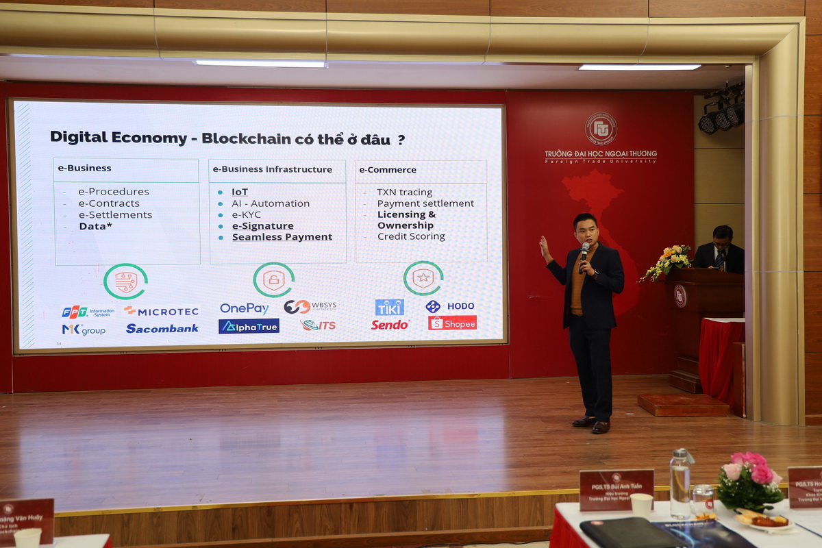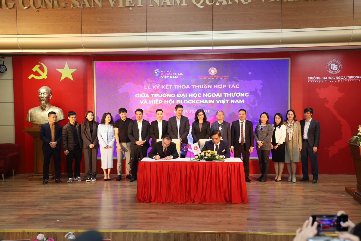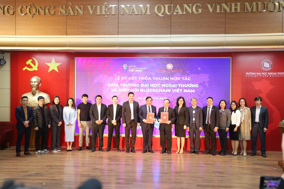 Ngày 22/12/2022, Trường ĐH Ngoại thương đã phối hợp với Hiệp hội Blockchain Việt Nam tổ chức Lễ ký kết thỏa thuận hợp tác giữa 2 đơn vị và tọa đàm “Vai trò của Blockchain trong phát triển kinh tế số”.
