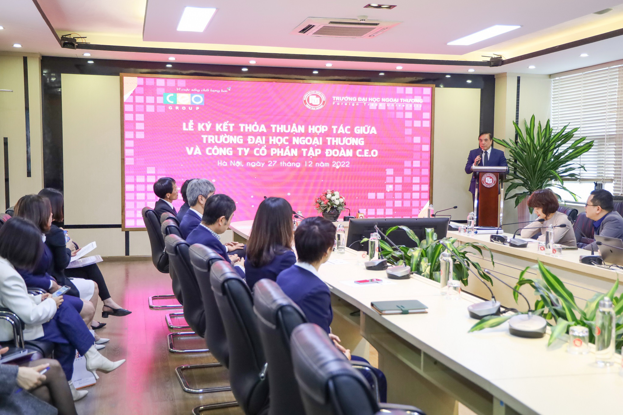 Ngày 27/12/2022, Trường ĐH Ngoại thương đã tổ chức Lễ ký kết thỏa thuận hợp tác với Công ty Cổ phần Tập đoàn CEO (Tập đoàn CEO).
