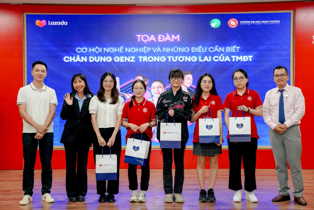 Tại chương trình, dự án Lazada Ecommerce Education đã chính thức công bố 05 Đại sứ sinh viên của chiến dịch tại Trường ĐH Ngoại thương - Cầu nối giúp Lazada và nhà trường truyền cảm hứng, lan tỏa thông điệp ý nghĩa dự án và khuyến khích cộng đồng sinh viên tham gia học tập và trau dồi kỹ năng thực hành TMĐT.
