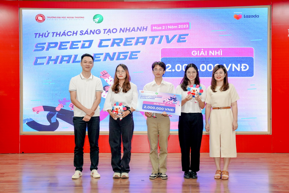 Trong khuôn khổ chương trình, vòng chung kết Cuộc thi Thử thách Sáng tạo nhanh – Speed Creative Challenge – Mùa 2 năm 2023 với sự tài trợ của Lazada đã diễn ra với sự tham gia tranh tài của 4 đội thi xuất sắc nhất với 4 mặt hàng khác nhau. Đúng với cái tên Speed Creative Challenge, các đội thi đã phải hoàn thành bài thi trong một khoảng thời gian rất ngắn, từ ngày 25/10 đến 29/10/2023. Theo đó, các đội thi chọn 1 gian hàng bất kì trên Lazada, đưa ra ý tưởng, đề xuất cải tiến gian hàng để thu hút khách hàng hơn và gia tăng trải nghiệm cho khách hàng tại gian hàng và thực hiện quay video (Tối đa 3 phút) trình bày về ý tưởng, kèm hình ảnh minh hoạ trước và sau khi cải tiến của gian hàng. Đây là một thử thách vô cùng khó khăn, đòi hỏi các đội thi phải có sự sáng tạo, khả năng tư duy nhanh nhạy và khả năng thực thi hiệu quả. Tại đêm chung kết, 04 đội thi đã lần lượt trình bày về ý tưởng gian hàng của mình cũng như trả lời các câu hỏi từ Ban giám khảo.