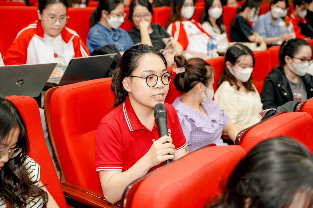 Phần thảo luận bàn tròn về "Cơ hội nghề nghiệp và Những điều cần biết cho GenZ trong TMĐT" có sự tham gia chia sẻ của các chuyên gia hàng đầu trong ngành TMĐT: Bà Lê Hoàng Vy - Quản lý Cấp cao của Học viện Lazada Việt Nam và Ông Vũ Duy Khánh - Tổng Giám đốc Công ty Cổ phần Ecom Group được điều phối bởi ThS Nguyễn Huyền Minh - Trưởng Phòng Truyền thông và QHĐN. Phần tọa đàm đã mang đến cho người tham dự những thông tin hữu ích về cơ hội nghề nghiệp trong ngành TMĐT, những điều cần biết để thành công trong lĩnh vực này, cũng như chân dung GenZ trong tương lai của TMĐT. Nhiều câu hỏi thắc mắc của các bạn sinh viên đã được các diễn giả giải đáp tường tận, cũng như truyền cảm hứng cho các bạn trẻ đang muốn bắt đầu tìm hiểu và khởi động công việc trong lĩnh vực này.