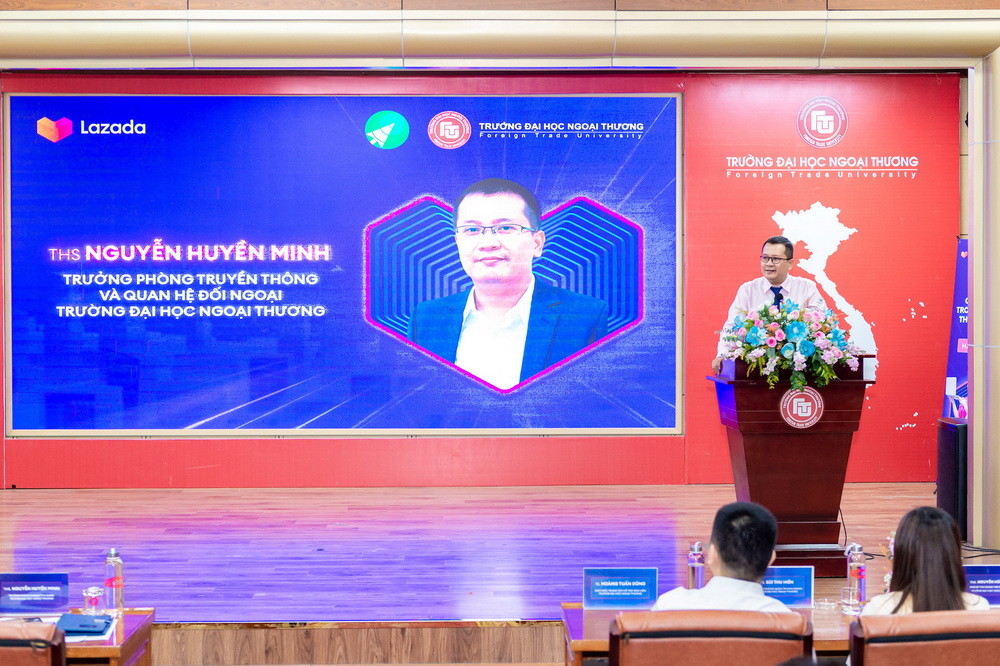 Phát biểu khai mạc chương trình, ThS Nguyễn Huyền Minh nhấn mạnh, với triết lý giáo dục hướng tới khai phóng, gắn với thực tiễn; nuôi dưỡng tính trung thực, tinh thần trách nhiệm và năng lực sáng tạo, Trường ĐH Ngoại thương định hướng phát triển quan hệ hợp tác với các đối tác uy tín (Accredited partner) cùng các mô hình hợp tác nâng cao (Advanced model). Sự kiện chia sẻ định hướng nghề nghiệp với Lazada Việt Nam cùng với sự kiện bên lề - Cuộc thi thử thách sáng tạo nhanh mùa 2 năm 2023 là một trong những hoạt động hợp tác điển hình, thực hiện nội dung ký kết hợp tác giữa hai bên. Nhân dịp này, thầy cũng gửi lời cảm ơn sâu sắc tới Lazada Việt Nam, cùng các giảng viên, đối tác, đơn vị đồng hành đã hỗ trợ cùng Nhà trường tổ chức sự kiện ý nghĩa này cho các bạn sinh viên.