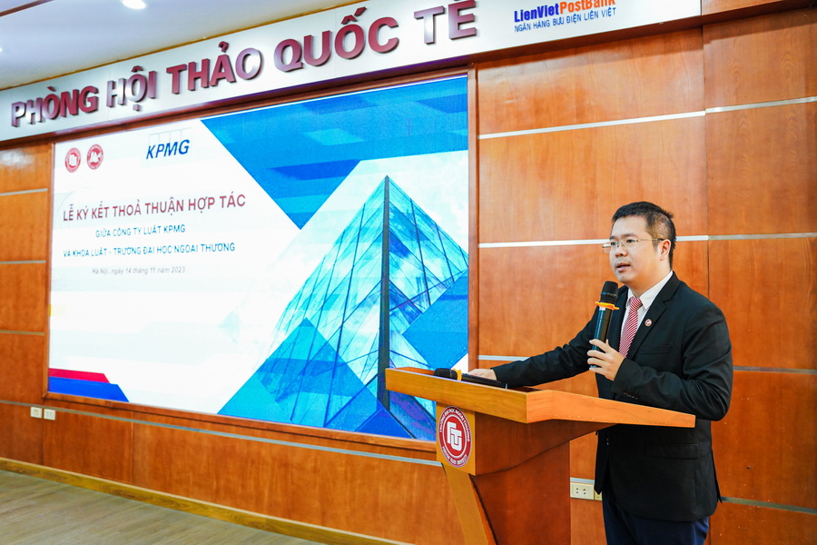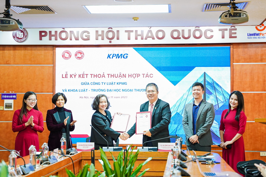 Ngày 14/11/2023, nằm trong khuôn khổ Tuần lễ Nghiên cứu và Kết nối nghề Luật 2023, Khoa Luật, Trường ĐH Ngoại thương tổ chức Lễ ký kết Thỏa thuận hợp tác với Công ty Luật KPMG Việt Nam.