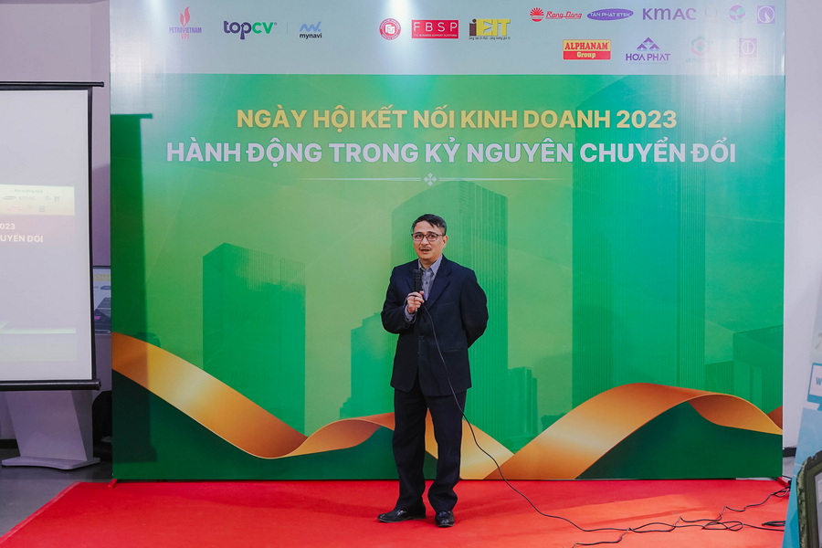 Phát biểu khai mạc diễn đàn, PGS, TS Đào Ngọc Tiến đã có đôi lời chia sẻ về hành trình phát triển Cổng thông tin cũng như xây dựng sự kiện “Ngày hội kết nối kinh doanh” trở thành một sự kiện thường niên. Đến nay sự kiện đã duy trì được 3 năm liên tiếp và ngày càng mở rộng quy mô với mục tiêu tạo nên cơ hội để các doanh nghiệp có dịp giao lưu, kết nối và lan tỏa tri thức, đồng thời đẩy mạnh mối liên hệ giữa Nhà trường và Doanh nghiệp. Ngoài ra, thầy Tiến còn gửi lời tri ân tới các đối tác đã đồng hành cùng Cổng thông tin trong năm qua và cảm ơn các doanh nghiệp tới tham dự sự kiện. Đứng trên cương vị là Trưởng Ban chỉ đạo Cổng thông tin, PGS, TS Đào Ngọc Tiến cũng đặt ra nhiều mục tiêu về việc phát triển thêm các hoạt động nhằm sát cánh với doanh nghiệp trong tương lai, cùng các doanh nghiệp ứng phó với làn sóng chuyển đổi.