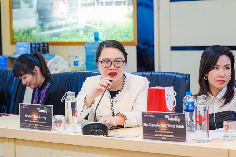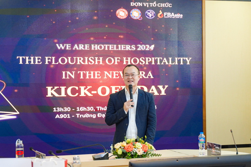 Nhân dịp này, PGS, TS Phạm Thu Hương cũng gửi lời cảm ơn chân thành tới sự đồng hành, hỗ trợ của các tổ chức doanh nghiệp trong việc xây dựng và phát triển chương trình đào tạo ngành Quản trị khách sạn của Trường ĐH Ngoại thương thời gian qua. Nhấn mạnh mục đích và ý nghĩa của cuộc thi cuộc thi "We are Hoteliers 2024", PGS, TS Phạm Thu Hương nhấn mạnh cuộc thi góp phần thắp lên niềm đa mê trong lĩnh vực Quản trị khách sạn của các bạn trẻ trên toàn quốc.