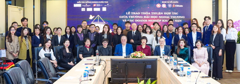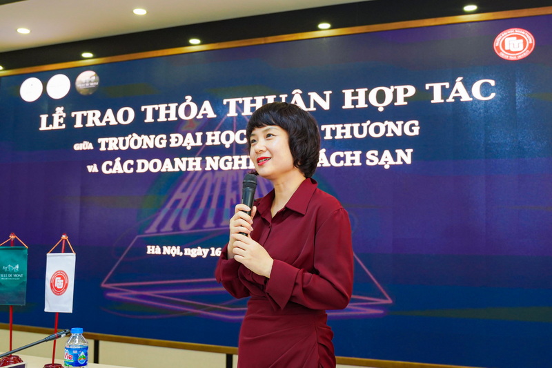 Về phía Trường ĐH Ngoại Thương có PGS, TS Phạm Thu Hương - Phó Hiệu trưởng Nhà trường; PGS, TS Lê Thái Phong - Trưởng Khoa Quản trị kinh doanh; ThS Đào Thị Thu Hà - Phó Trưởng phòng Hợp tác Quốc tế; các cán bộ, giảng viên, sinh viên Nhà trường và các bạn trẻ quan tâm đăng ký tham gia cuộc thi "We are Hoteliers 2024". Phát biểu khai mạc buổi lễ, PGS, TS Phạm Thu Hương khẳng định buổi lễ trao biên bản ghi nhớ hợp tác là minh chứng cho sự nỗ nỗ lực của Nhà trường trong việc xây dựng mạng lưới các doanh nghiệp đối tác trong lĩnh vực khách sạn, góp phần cung cấp nguồn nhân lực đáp ứng yêu cầu trong lĩnh vực này.