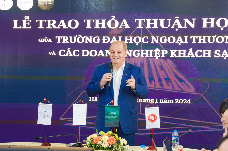 Ngày 16/01/2024, Khoa Quản trị kinh doanh, Trường ĐH Ngoại thương đã tổ chức Lễ trao biên bản ghi nhớ hợp tác (MOU) giữa Nhà trường và 3 doanh nghiệp khách sạn bao gồm Capella Hanoi, Grand Mercure Hanoi, Ville De Mont Mountain Resort.