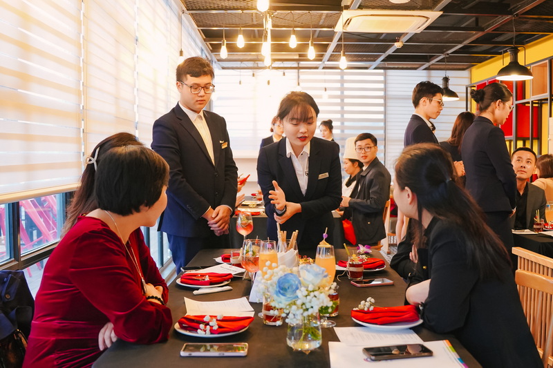 Ngành dịch vụ khách sạn là một trong những ngành đòi hỏi tính thực tế và yêu cầu cao về sự tỉ mỉ, tinh tế và quan sát toàn diện. Để trang bị cho sinh viên những kỹ năng thiết yếu trước khi bắt đầu kỳ thực tập, các bạn sinh viên chương trình Chất lượng cao Quản trị Khách sạn (CLC QTKS) K61 đã được đào tạo về các nghiệp vụ chính trong khách sạn như Lễ tân, Nhà hàng và quầy bar, Buồng phòng tại trường ĐH Ngoại thương và Học viên quốc tế CHM trong kỳ học vừa qua. Buổi báo cáo đánh giá thực hành như một cột mốc, đánh dấu sự sẵn sàng của các em về thái độ, kỹ năng cũng như nghiệp vụ cho ngành nghề tương lai.