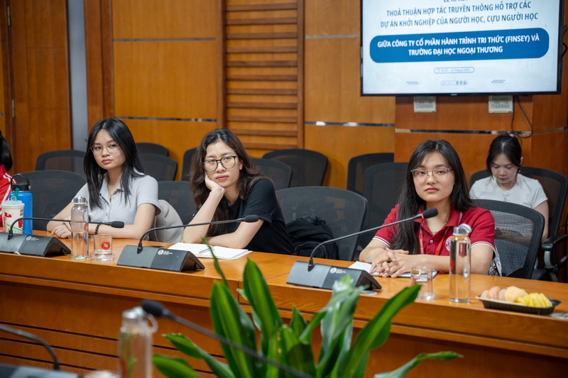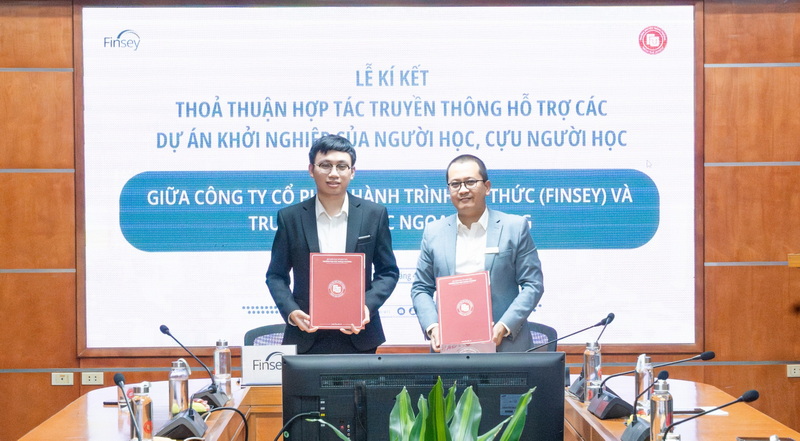 Ngày 24/4/2025, Trường ĐH Ngoại thương đã phối hợp với startup Finsey tổ chức Lễ ký kết Thỏa thuận hợp tác truyền thông hỗ trợ thúc đẩy các dự án khởi nghiệp của người học và cựu người học, kết hợp cùng buổi chia sẻ hướng nghiệp “Quản lý tài chính cá nhân – Chìa khóa của thành công”.