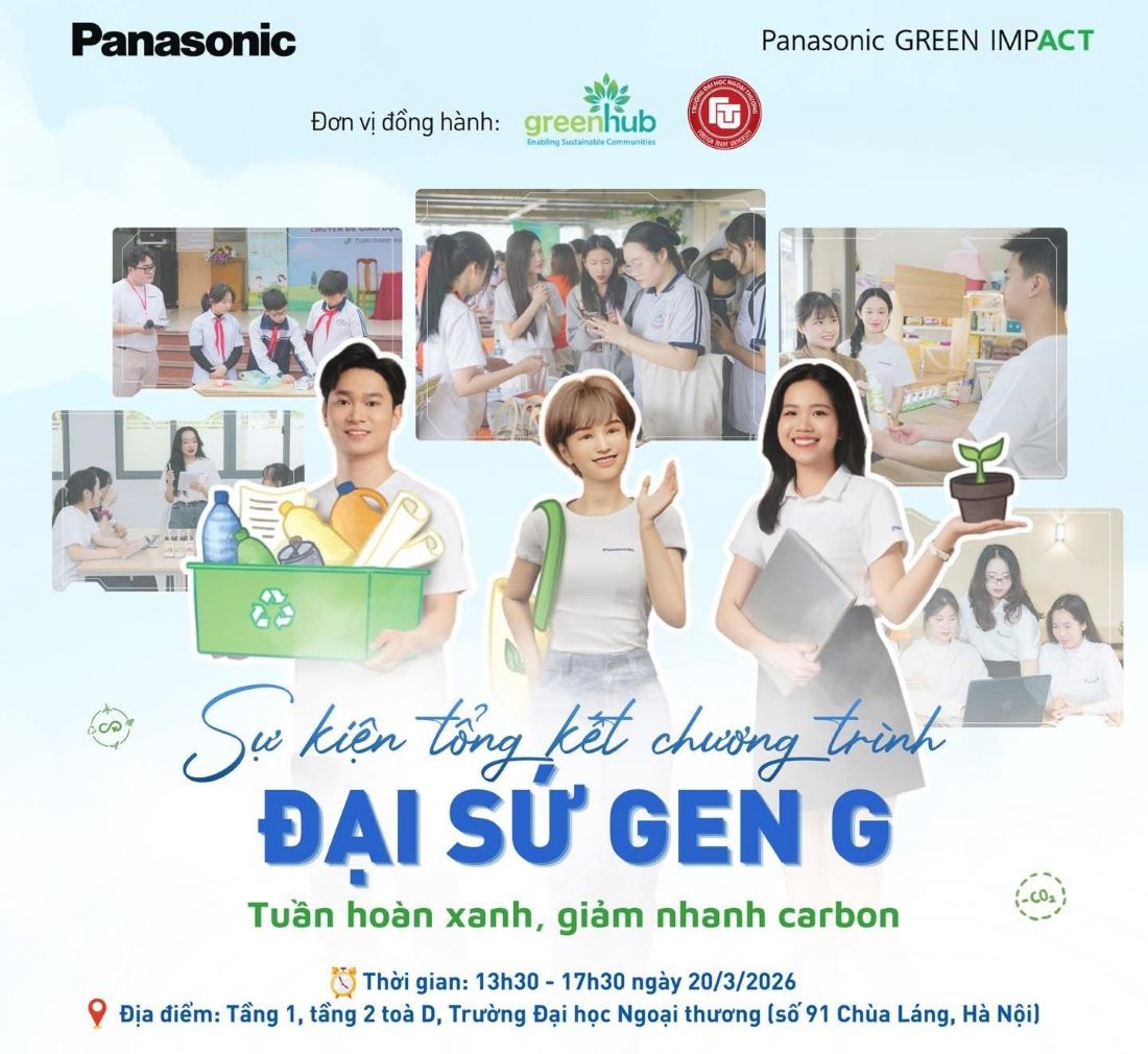 Sự kiện Tổng kết Đại sứ Gen G 2025 là chương trình nhằm vinh danh Top 5 sáng kiến tiêu biểu và các đóng góp cho cộng đồng, đồng thời mang đến cơ hội cho đông đảo sinh viên tiếp cận, giao lưu, học hỏi và nâng cao nhận thức về các sáng kiến bảo vệ môi trường và lối sống bền vững. Chương trình do Phòng Truyền thông & Quan hệ đối ngoại, Trường Đại học Ngoại Thương và Công ty TNHH Panasonic Việt Nam đồng tổ chức.