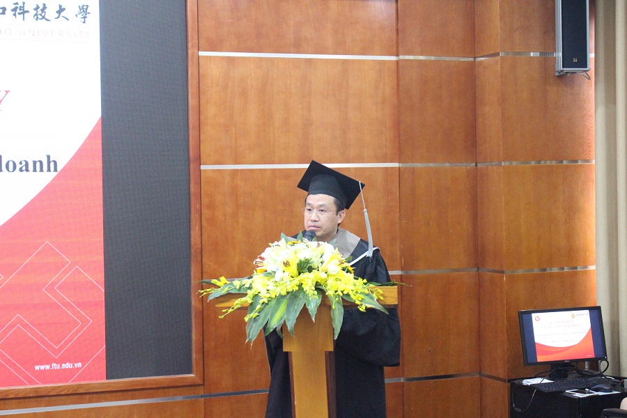 Đại diện phía Đại học Meiho, TS. Hung-kai Yen – Trưởng phòng Hợp tác Quốc tế gửi lời chúc mừng tới 39 Tân thạc sĩ, chúc các học viên sẽ tận dụng được hết những kiến thức và lợi ích mà chương trình mang lại, với những thành quả đạt được ngày hôm nay sẽ không ngừng tiếp tục học hỏi và phấn đấu nhiều hơn nữa.