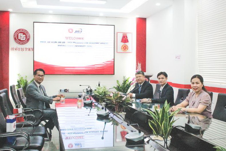 Đón tiếp lãnh đạo ĐH Angelo State có PGS, TS Trần Quốc Trung - Phó Giám Đốc Cơ sở II cùng Lãnh đạo và viên chức Ban Đào tạo quốc tế. Tại buổi trao đổi, GS, TS Won-Jae Lee đã chia sẻ nhiều thông tin liên quan về xu hướng ngành nghề trên thế giới, những cơ hội của du học sinh khi theo học chương trình cùng những thế mạnh trong phương thức triển khai chương trình liên kết đào tạo quốc tế hiện nay tại ĐH Angelo State và trường ĐH Ngoại thương.