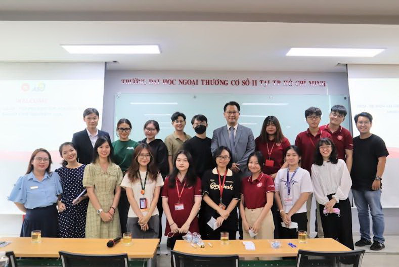 Ngày 05/05/2023, Cơ sở II Trường ĐH Ngoại thương tại TP. HCM đã vinh dự đón tiếp GS, TS Won-Jae Lee - Phó Hiệu trưởng ĐH Angelo State (Hoa Kỳ) đến thăm và trao đổi phát triển chương trình đào tạo. Đây là hoạt động gặp gỡ thường niên giữa lãnh đạo 2 trường và sinh viên các chương trình đào tạo quốc tế.