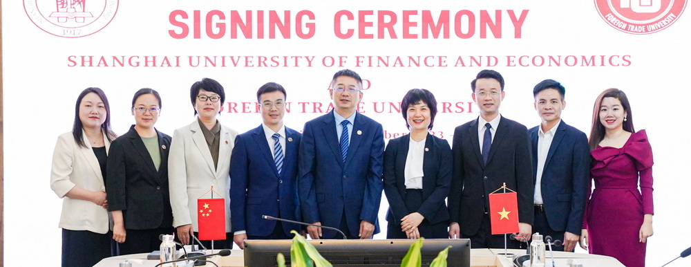 Ngày 13/11/2023, Trường ĐH Ngoại thương tiếp đón đoàn đại biểu của Đại học Kinh tế và Tài chính Thượng Hải (Trung Quốc) tới thăm trường và làm việc tại Trụ sở chính Hà Nội. Trong buổi làm việc, đại diện lãnh đạo hai trường đã ký kết Thỏa thuận hợp tác, đặt dấu mốc quan trọng trong việc thiết lập quan hệ hợp tác giữa 2 trường và mở ra các cơ hội hợp tác song phương giữa hai trường trong tương lai.
