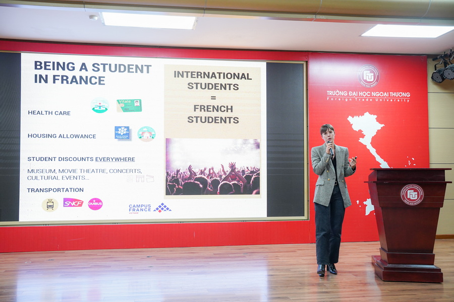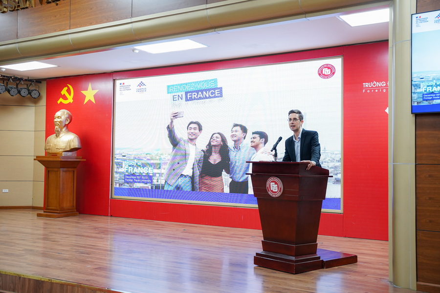 Ngày 05/12/2023, Trường ĐH Ngoại thương đã phối hợp với Campus France Việt Nam và Đại sứ quán Pháp tại Việt Nam tổ chức Buổi Giới thiệu Thông tin Campus France 2023 cho các bạn sinh viên của Nhà trường.