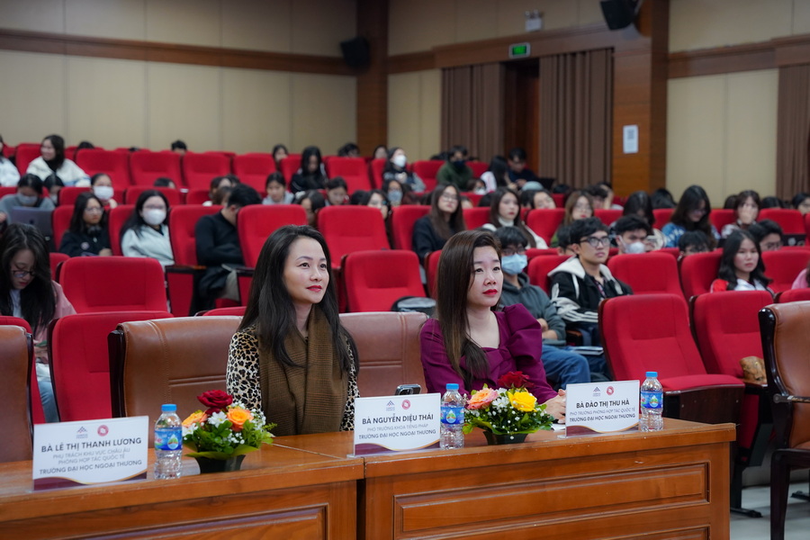 Về phía Trường ĐH Ngoại thương có ThS Đào Thị Thu Hà - Phó trưởng phòng Hợp tác Quốc tế; ThS Nguyễn Diệu Thái - Phó Trưởng khoa Tiếng Pháp cùng các cán bộ Nhà trường.
