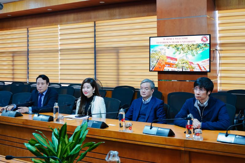 Về phía Trường ĐH Ngoại thương có PGS, TS Đào Ngọc Tiến - Phó Hiệu trưởng; PGS, TS Vũ Hoàng Nam – Trưởng Phòng quản lý Khoa học; PGS, TS Hoàng Xuân Bình - Trưởng Khoa Kinh tế Quốc tế; ThS Đào Thị Thu Hà – Phó Trưởng Phòng Hợp tác quốc tế đã tham dự buổi làm việc.