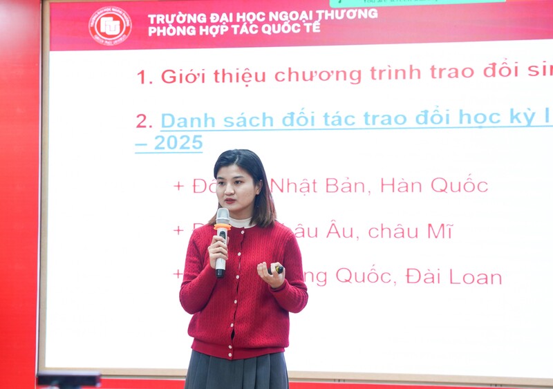 Ngày 01/02/2024, Phòng Hợp tác Quốc tế, Trường ĐH Ngoại thương đã tổ chức Buổi Tư vấn và Giới thiệu thông tin về chương trình trao đổi sinh viên đi học kỳ I năm học 2024 - 2025 dành cho các bạn sinh viên quan tâm tới chương trình trao đổi đi vào kỳ tháng 8, tháng 9/2024.