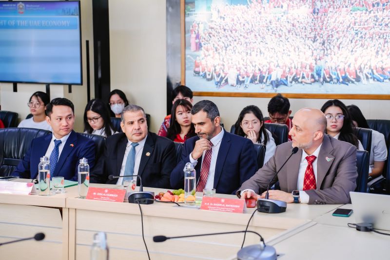 Đại sứ đặc mệnh toàn quyền Các tiểu vương quốc Ả Rập thống nhất tại Việt Nam - TS Bader Almatrooshi đến thăm và chia sẻ với sinh viên trường ĐH Ngoại thương tại tọa đàm khoa học “Triển vọng hợp tác phát triển kinh tế Việt Nam – UAE”