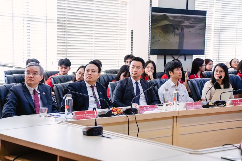 Tiếp đón đoàn, về phía lãnh đạo Trường ĐH Ngoại thương có PGS, TS Đào Ngọc Tiến - Phó Hiệu trưởng; PGS, TS Vũ Hoàng Nam - Trưởng phòng Quản lý Khoa học; PGS, TS Cao Đinh Kiên - Trưởng phòng Hợp tác Quốc tế; PGS, TS Hoàng Xuân Bình - Trưởng khoa Kinh tế Quốc tế (KTQT).