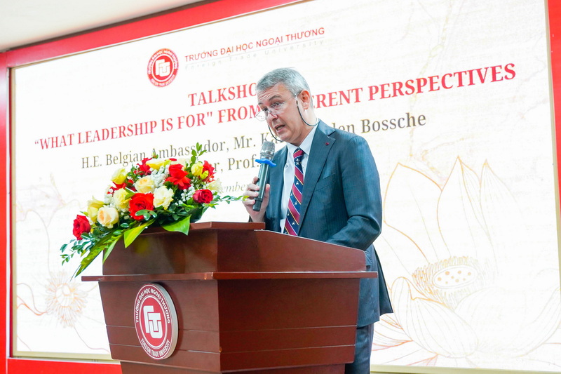 Đại sứ Đặc mệnh Toàn quyền Vương quốc Bỉ tại Việt Nam thăm và chia sẻ với sinh viên Ngoại thương về chủ đề "Khám phá những quan điểm đa dạng về lãnh đạo"