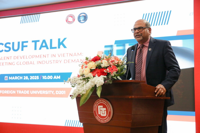 Phát biểu khai mạc hội thảo, PGS, TS Lê Thái Phong bày tỏ sự trân trọng đối với mối quan hệ hợp tác giữa Trường ĐH Ngoại thương và Trường Kinh tế và Kinh doanh CSUF. PGS, TS Lê Thái Phong nhấn mạnh rằng trong thời đại công nghệ thay đổi nhanh chóng và nhu cầu lao động toàn cầu ngày càng cao, sinh viên cần trang bị những kỹ năng linh hoạt và phù hợp để nắm bắt cơ hội và thích ứng với yêu cầu khắt khe từ các doanh nghiệp.