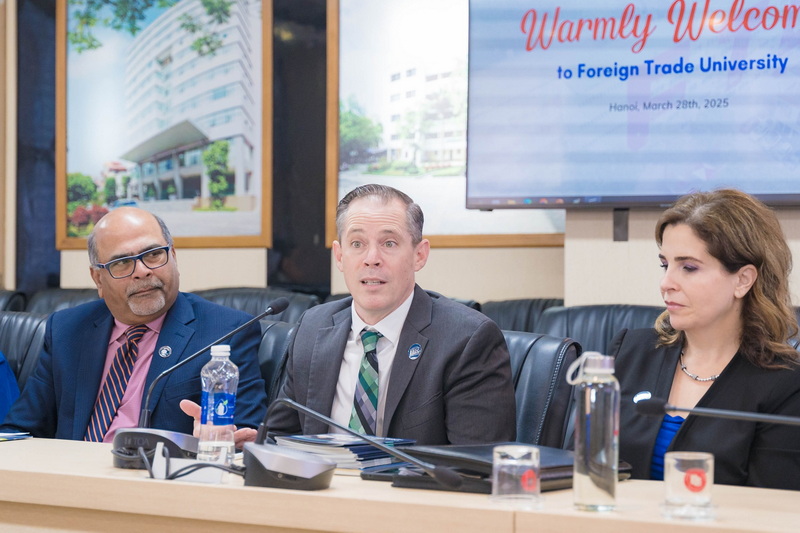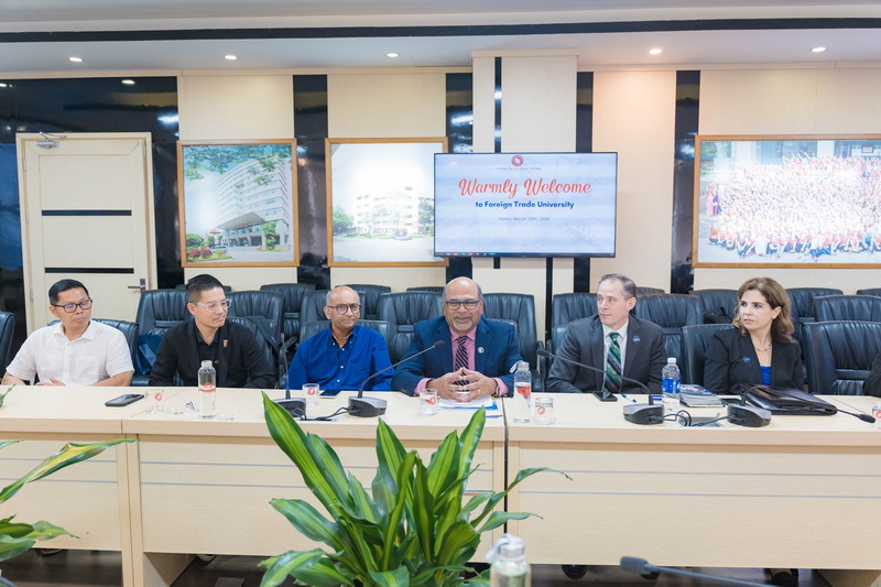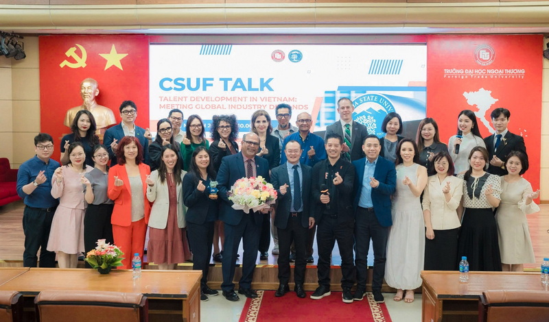 Ngày 28/3/2025, đoàn công tác Đại học Tổng hợp bang California Fullerton Hoa Kỳ ( California State University Fullerton- CSUF) cùng Phái đoàn Lãnh đạo các doanh nghiệp Hoa Kỳ thuộc Trung tâm phát triển doanh nghiệp nhỏ Hoa Kỳ (America’s SBDC) đã có chuyến thăm và làm việc tại Trường ĐH Ngoại thương (FTU).