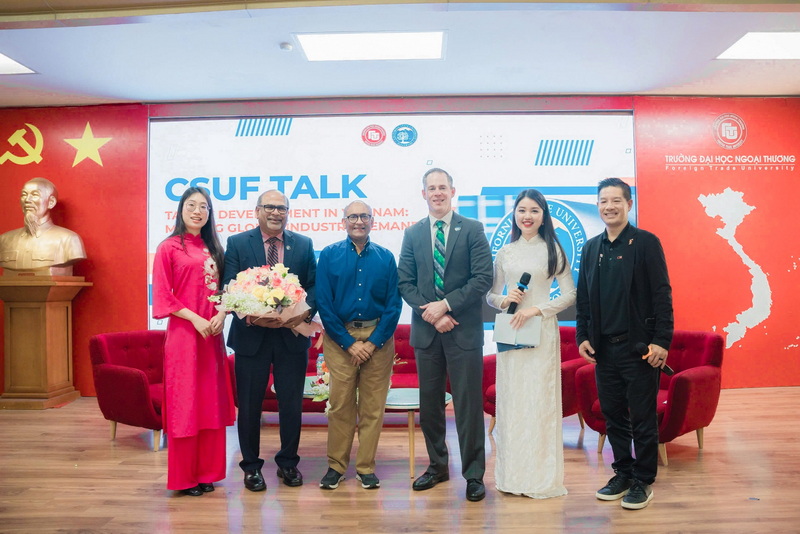 Cũng trong khuôn khổ chuyến thăm, đoàn công tác từ California State University, Fullerton (CSUF) và Phái đoàn CEO Hoa Kỳ đã tham gia chia sẻ với cán bộ, giảng viên, sinh viên tại Tọa đàm với chủ đề "CSUF Talk: Talent Development in Vietnam: Meeting Global Industry Demands".